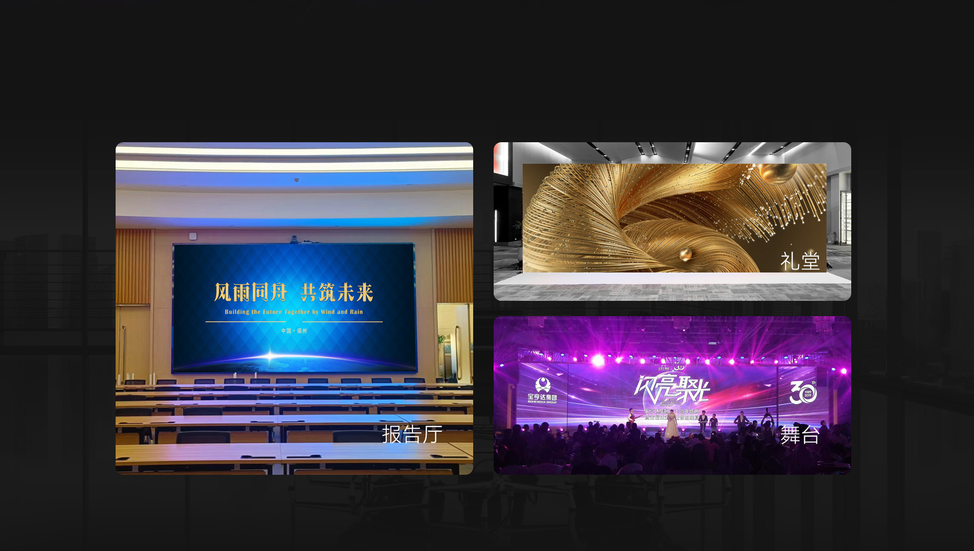 报告厅、礼堂、舞台等远距离且设计面积较大场景使用。